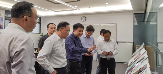 来访领导考察了昇印光电在创新驱动及产业技术创新方面的做法和成效。以及昇印光电科研资源聚集、科技成果创造和科技成果转化的情况,特别是科技成果转化中试环节的情况。并且针对昇印光电与自贡市未来的开展合作做出了前景探讨。
